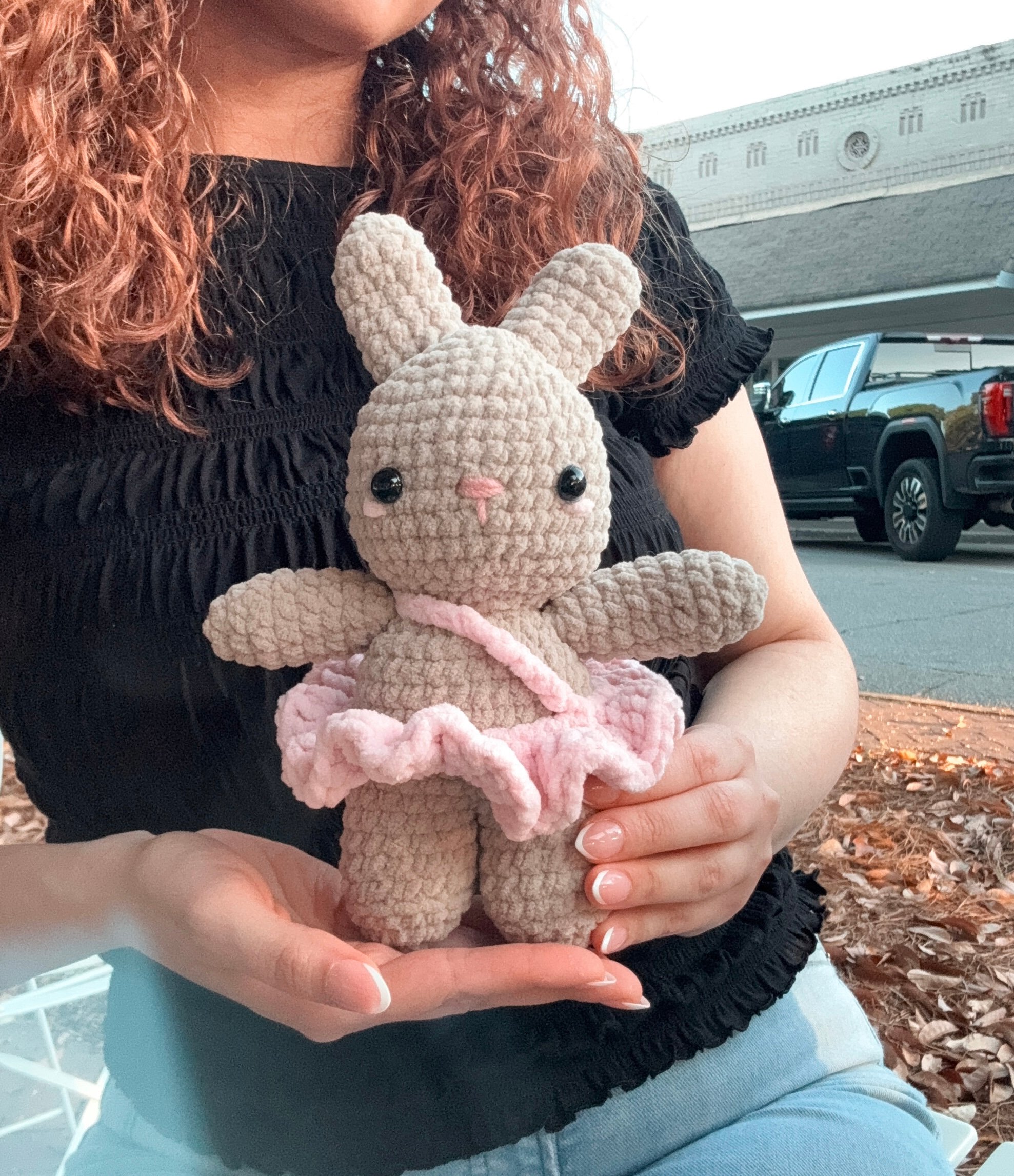 100% handmade crochet plushy in Taupe with Light Pink Ballerina outfit.
