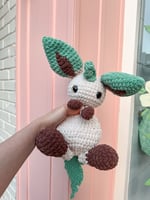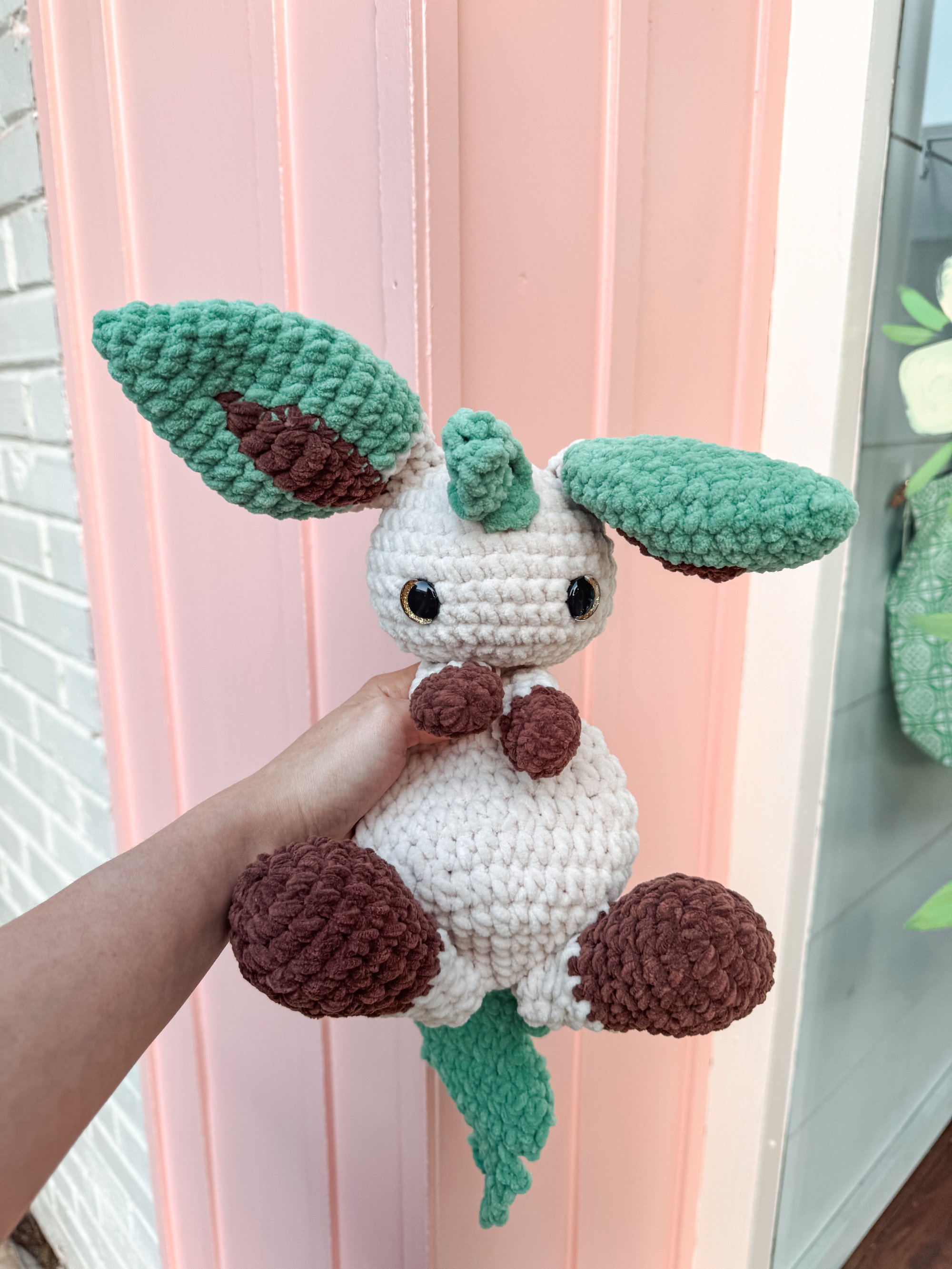 100% handmade crochet Leafeon snuggler from Pokémon.